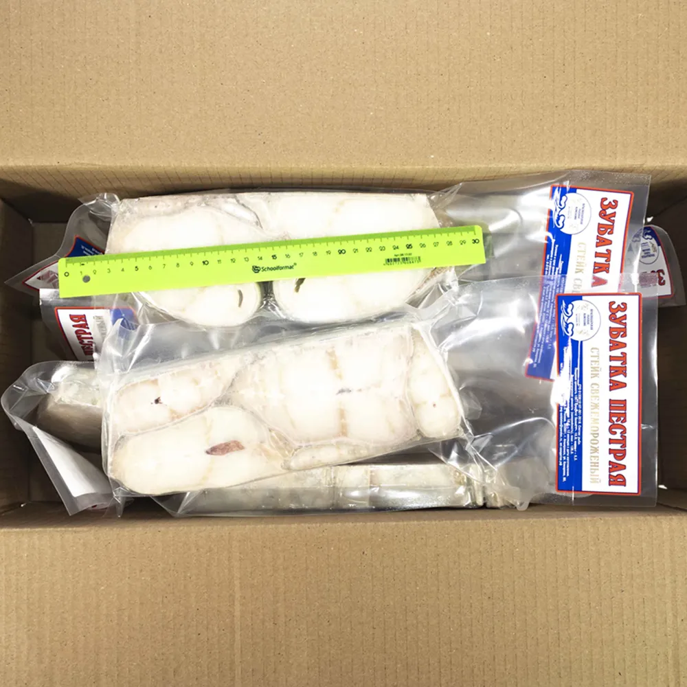 Стейк зубатки — вкусный и полезный деликатес. Подойдет для запекания, жарки, приготовления на пару и гриле. У этой рыбы очень нежное белое мясо с относительно небольшим количеством костей. Умеренно жирное, приятное на вкус, оно просто тает во рту! Прекрасно сочетается со сметанным соусом, зеленью и сыром.
